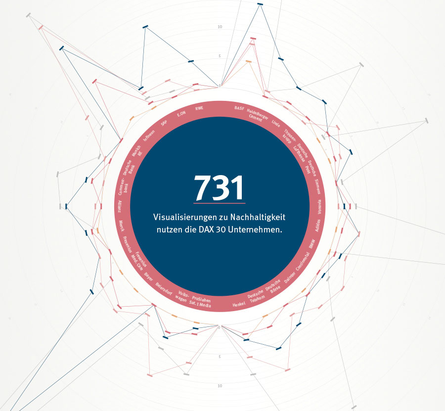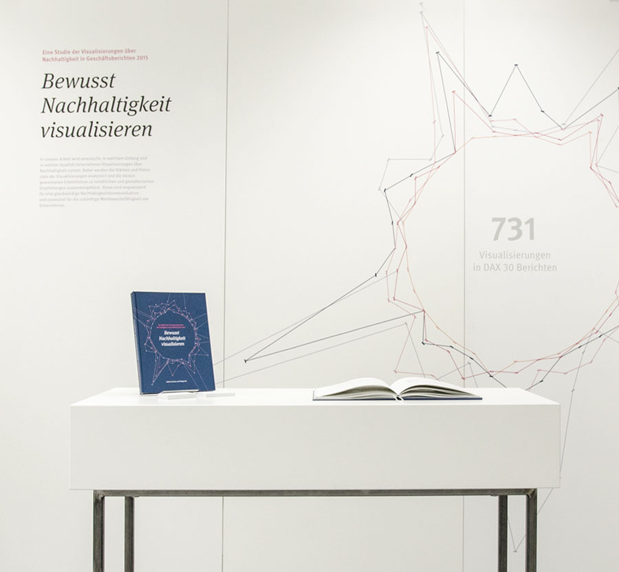 Die CSR-Richtlinie, die Anfang 2017 in Kraft getreten ist, verpflichtet große deutsche Unternehmen über Nachhaltigkeit zu berichten. Die Gestaltung von Visualisierungen hilft dabei, diese Thematik in ihren Dimensionen und Zusammenhängen erfahrbar zu machen und schafft so ein verstärktes Bewusstsein für Nachhaltigkeit. Unsere Abschlussarbeit untersucht in zwei Studien die Visualisierungen in den Geschäftsberichten des Jahres 2015 der 30 größten deutschen börsennotierten Unternehmen. Die Arbeit richtet sich an Gestalter und Unternehmen, die sich mit Nachhaltigkeit aktuell und in Zukunft auseinander setzen. Die Ergebnisse aus den Studien ermöglichen es uns, Gestaltungsempfehlungen hinsichtlich der Visualisierung für nachhaltige Kommunikation zu geben. So zeigen wir auf, wie essentiell eine gute Gestaltung für das Vermitteln von glaubwürdiger Nachhaltigkeitskommunikation ist.